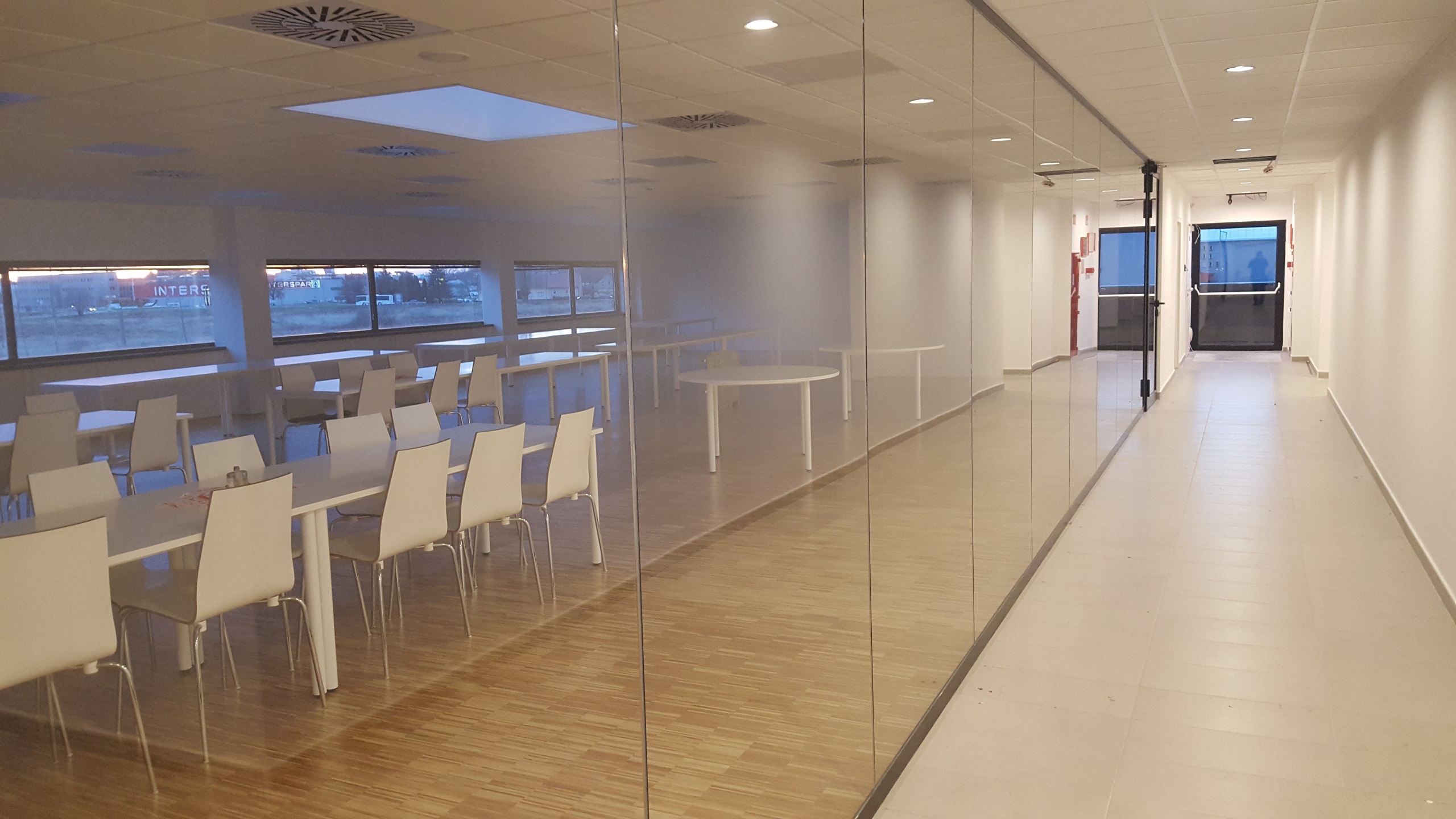 We produced and installed all glazing at XAL’s new centre in Murska Sobota. We constructed two large glass partition walls so that they fit the existing steel structure and can be demounted and moved to a different location if required. The same system was used for the control cabins; they were built in a Structural-Gazing system and provide an effective sound insulation. All window strips were built by combining façade and window profiles. The client found this construction method very interesting also for their headquarters in Austria.